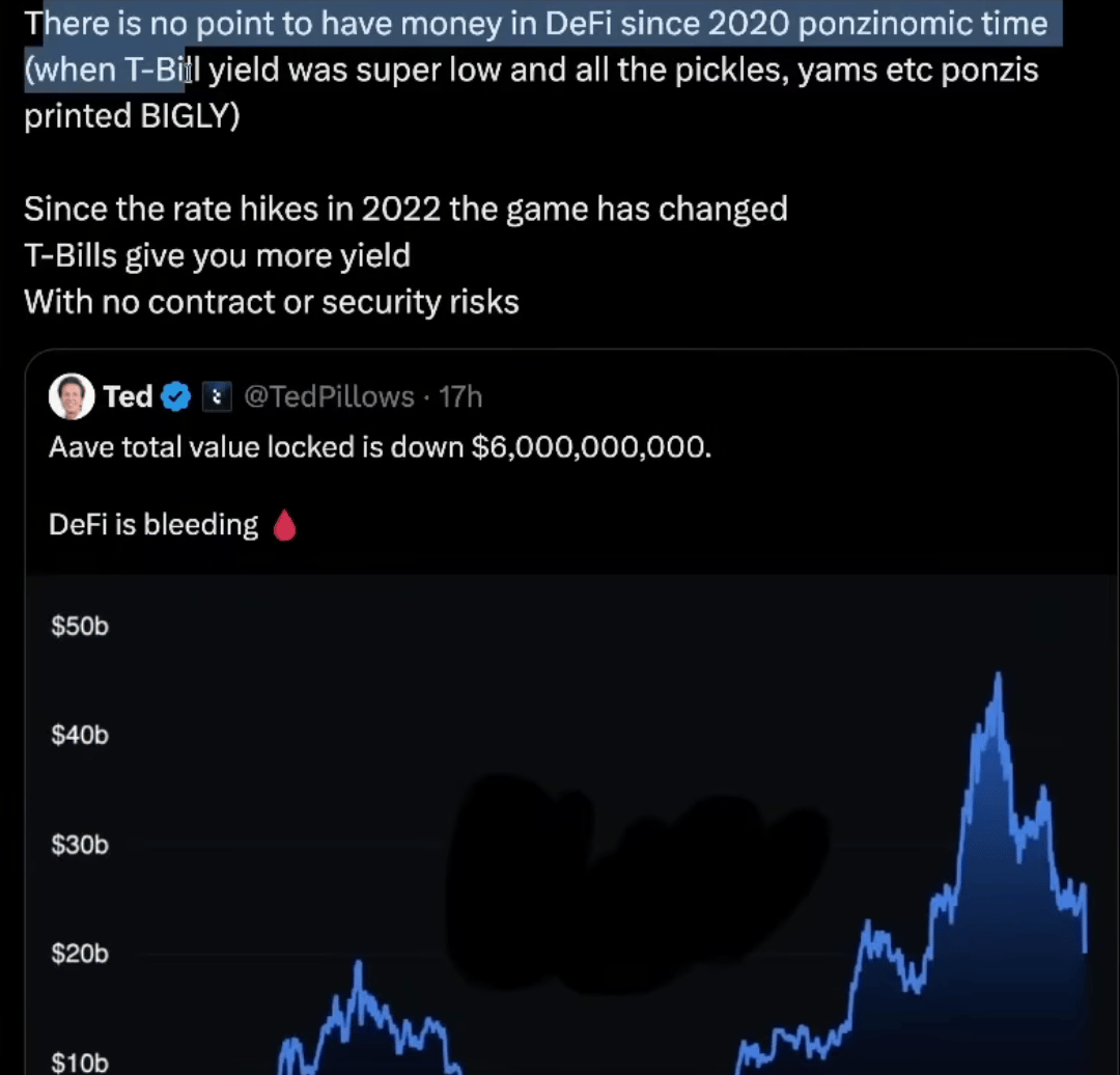 It makes much less sense when Treasuries and money market products already give you roughly 3% to 5% with dramatically less complexity and smart contract risk.