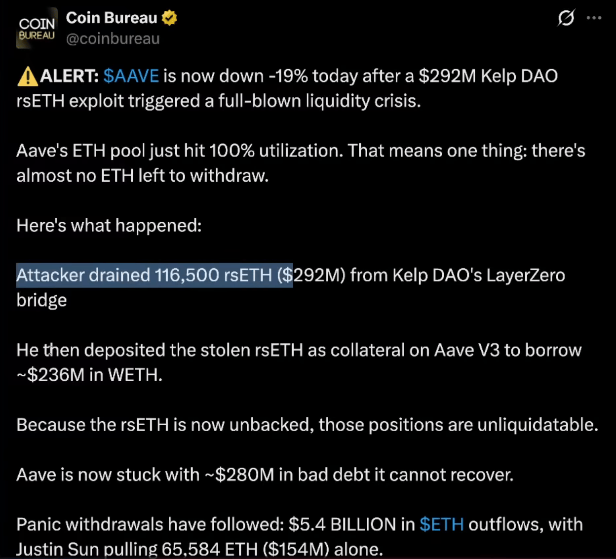 A major exploit hit Kelp DAO-related infrastructure and the fallout spread across connected protocols.