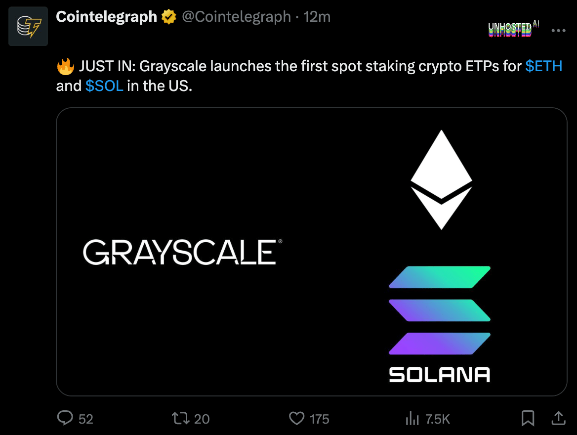 ⚡️Grayscale just dropped the first spot staking ETPs for $ETH and $SOL in the US — staking goes mainstream